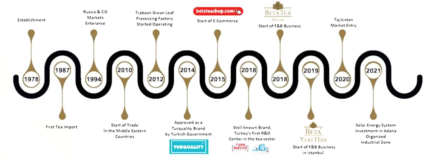 Beta Gıda Sanayi ve Ticaret A.Ş. 1978 yılında Adana'da küçük bir şirket olarak kurulmuştur. İlk faaliyet yılları gıda dışı ürünlerin ticaretine ayrılmıştı. Zamanla şirket faaliyet alanını gıda sektörüne doğru genişletti ve markalaşma faaliyetlerine başladı. Beta Gıda, Türkiye'ye ilk çay ithalatını gerçekleştirerek yerel tüketicileri yeni tatlarla tanıştırdı. 1994'te yaşanan ekonomik kriz Beta Gıda da dahil olmak üzere tüm ülkeyi etkiledi ve dış pazar arayışları zorunlu hale geldi. Şirket, 1990'ların başında Sovyetler Birliği'nden kopan ülkelerdeki fırsatları değerlendirmeyi başardı ve bu pazara girdi. Beta Gıda, eski Sovyet cumhuriyetlerine çay götüren ilk özel kuruluş oldu.