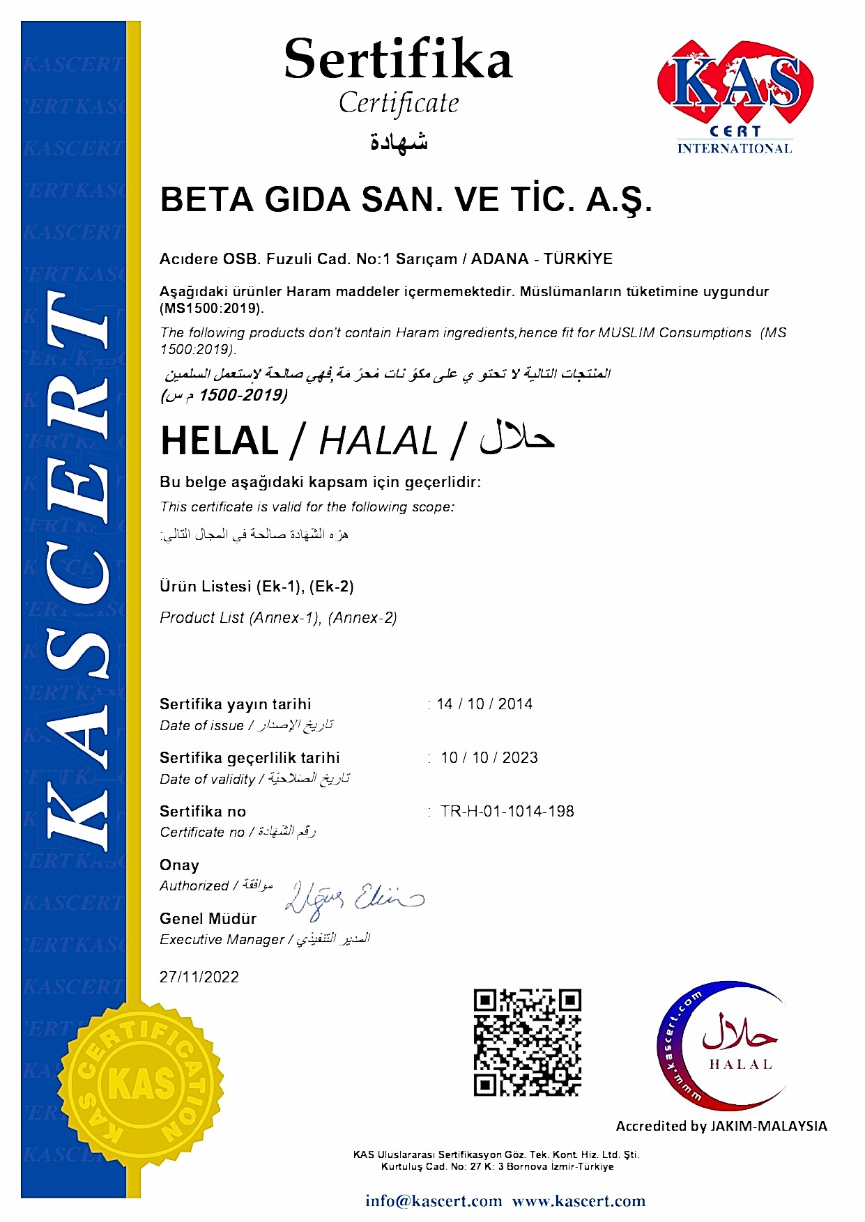 Sertifikalarımız